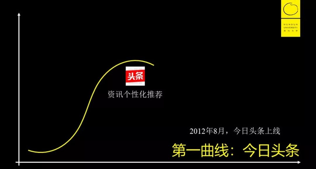 在今日头条这么多分形以及分形刺激里,哪一个分形成为头条今天的第二曲线?今日头条的哪一条曲线成长为第二曲线?抖音,这是今日头条的第二曲线。