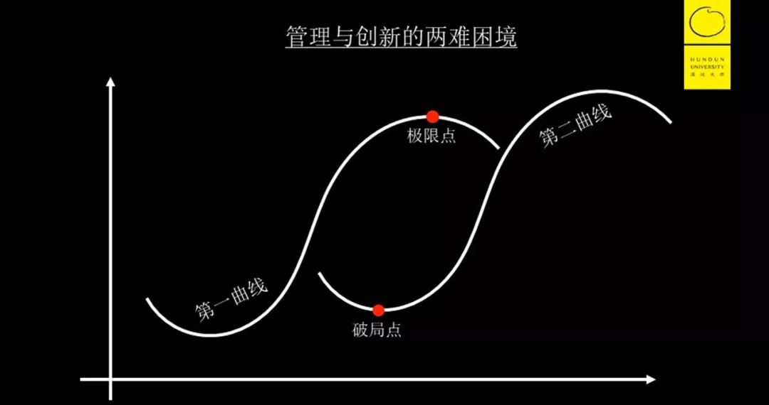 但创新是找死,第二曲线在找破局点之前,那个曲线是下降的。需要投入、冒险、决策等这样的一些促进来处理。