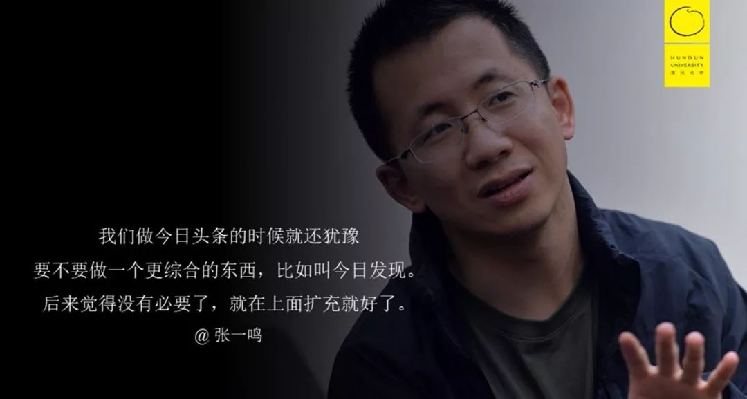 他说,做今日头条时,还犹豫要不要做一个综合的东西,比如“今日发现”,后来觉得没必要了,在今日头条上叠加东西就好了。