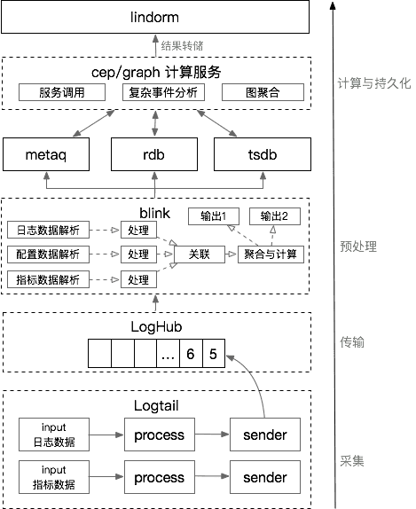 线上出现问题时常常需要十多分钟,甚至更长时间才能找到问题原因,因此一个能够快速进行自动诊断的系统需求就应用而生,而快速诊断的基础是一个高性能的实时数据处理系统。