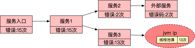 说明本次请求是由于下游jvm的线程池满导致的,但是一次调用并不能说明该服务不可用的根本原因,需要分析整体的错误情况,那就需要对图数据做实时聚合。