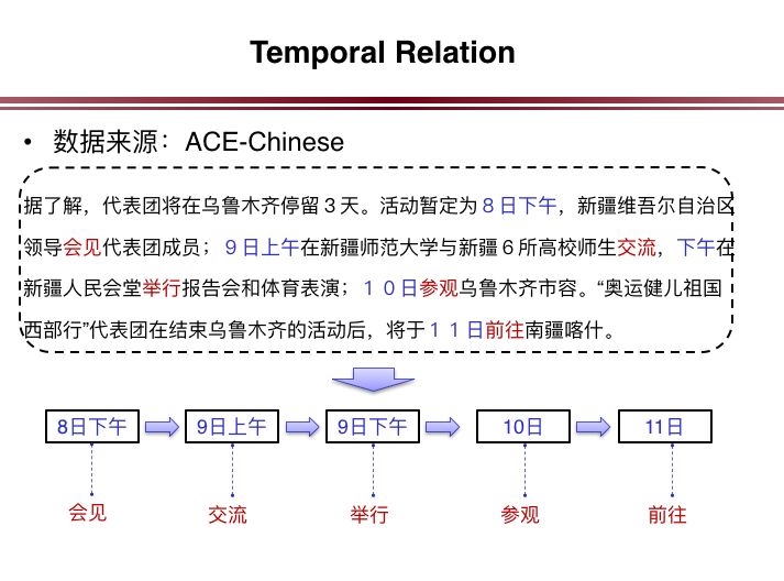 另外一个就是事件关系抽取,事件关系给大家介绍四类:共指,时序,因果和子事件。