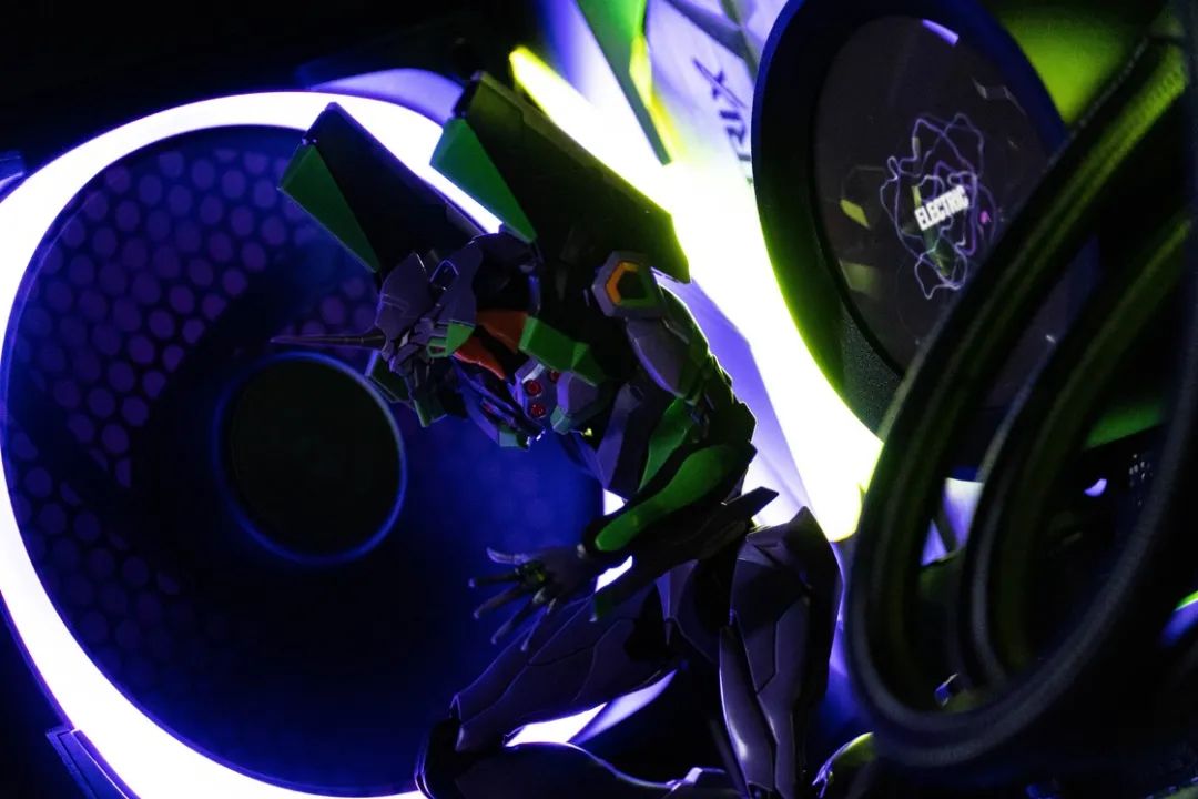 比如利用恩杰招牌的紫色灯光,辅以绿色的点缀,就可以得到「初号机主题」的机箱: