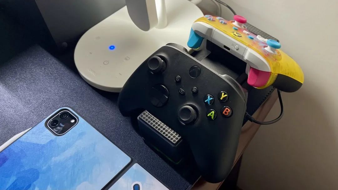 除了听歌看电影看剧,我还会偶尔打下游戏。适用于 macOS 用户的游戏方案也就两条:一台 PC 或者一台主机,为了最大经济效益我选择了 Xbox,Xbox Series X 方方正正的外观让我看着很舒服,不会像 PS5 一样像个硕大的怪物(主要还是没预算)。Xbox 的手柄我平时就放在充电支架上,充电支架是 imPoi 的,经济实惠,很是方便,和鼠标垫以及水獭一样,你可以在少数派商店中买到它。