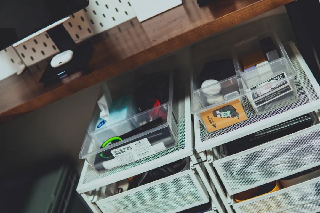 在大学时期因为个人空间有限,我曾经也陷入过类似的误区,比如购买各种收纳类的产品来尽量使桌面看起来整洁一些。但后来我意识到这个问题的最优解其实非常的原始,那就是把所有不属于桌面的东西都拿到别的地方去。