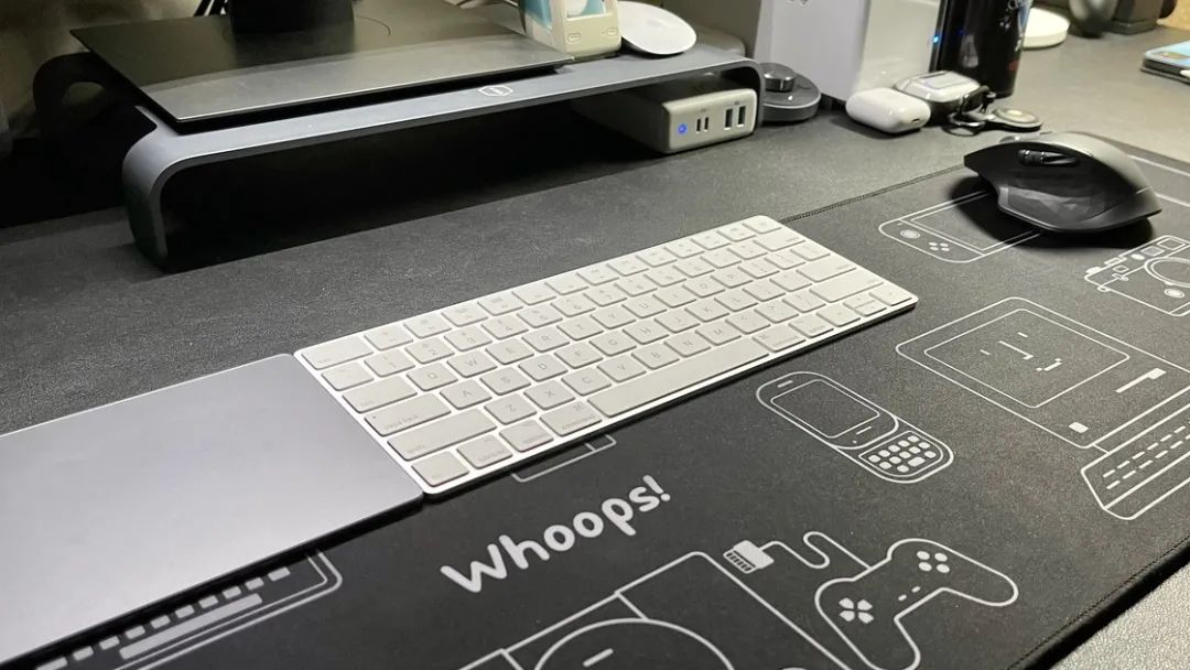 键鼠是 Magic Trackpad 2、Magic Keyboard 2、MX Master 2S,这些都是上一代产品,但是使用起来仍然十分流畅,所以我也就没有更新他们。Magic Trackpad 负责全局的手势操作,MX Master 2S 负责精确的点击,他俩的搭配可以说是天衣无缝,要是 Mac 对于蓝牙连接的干扰再小一点就可以称之为完美了。关于 Magic Keyboard,不得不说,有一排 F 键实在是太爽了,那种不用抬手就可以切歌、调整音量的感觉是 Touch Bar 给不来的。虽然我曾经使用过一段时间的 Keychron K2 和传奇键盘 K380,但是我最终还是回到了 Magic Keyboard,也许这种「噼里啪啦敲桌子」的感觉才会让我感到心安吧。鼠标垫来自少数派,颜色选择依然深得我意,虽然……也是白嫖来的。