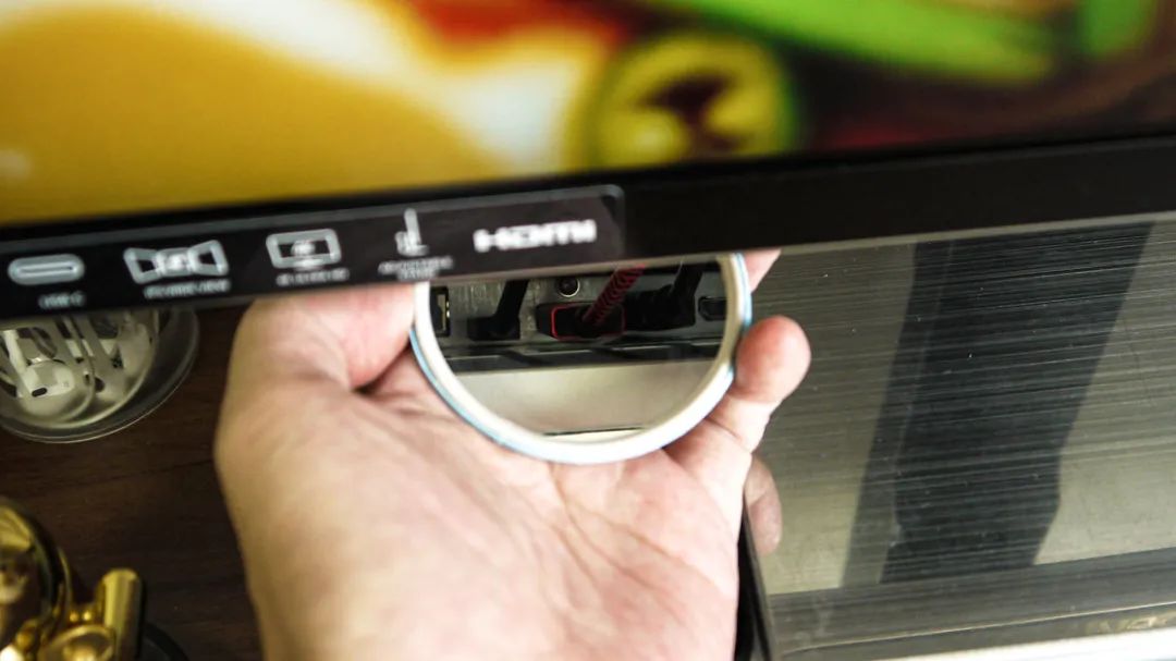 显示器接口插线并不是太方便,后续版本有所调整。借助于小镜子,插线更从容