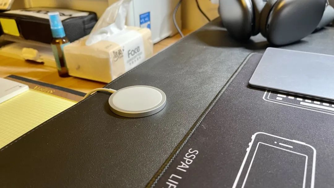 也许你注意到了,我把 MagSafe 充电器放在了左手边的位置,这样可以方便的给 iPhone 充电,并且可以随手拿起来,放下来时又会因为充电线的重力作用,自动的缩下去,不会出现线在桌子上就不回去了的现象。这是我在布置桌面时偶然发现的一个有趣的使用方法。