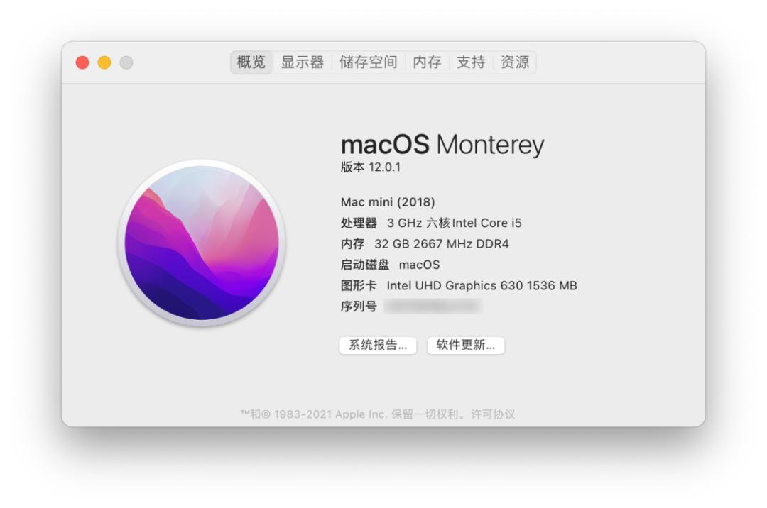 由于我日常的工作多偏向于文字类型,同时还有开 Windows 虚拟机玩游戏(上古的 RTS 游戏,对配置要求不高)的需求,因此电脑依然还是旧的 Mac mini 2018 款,并没有升级到 M1。这台 Mac mini 购买时是最低的 8GB 内存,我自己升级到了 32GB,目前使用来说还是十分流畅,没有出现过爆内存的问题。