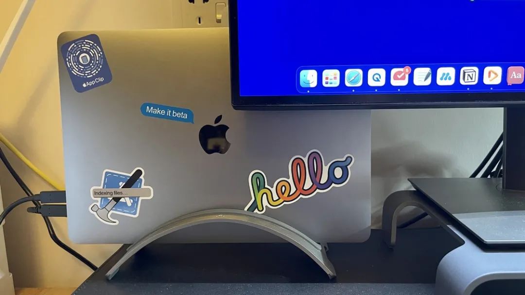 因为平时都是连接显示器使用,所以我选择了合盖并且把他立起来。虽说合盖使用会一定程度影响 Mac 通过键盘散热,但是少支撑一个内建的显示器也可以减轻一些负担,一番纠结之后我还是放弃了开盖连接显示器的使用方案。立式支架选择了 Twelve South 的 BookArc 深空灰,藏在显示器的后面可以有效的节省下空间,并且把最好看的 A 面展现在我面前。