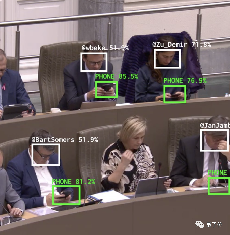 软件通过机器学习算法,在政客们开会的直播视频中寻找手机,一旦检测到政客在玩手机,就会将这段视频发布到Twitter、Instagram账户上,并打上标签,礼貌地提醒“请保持专注”。