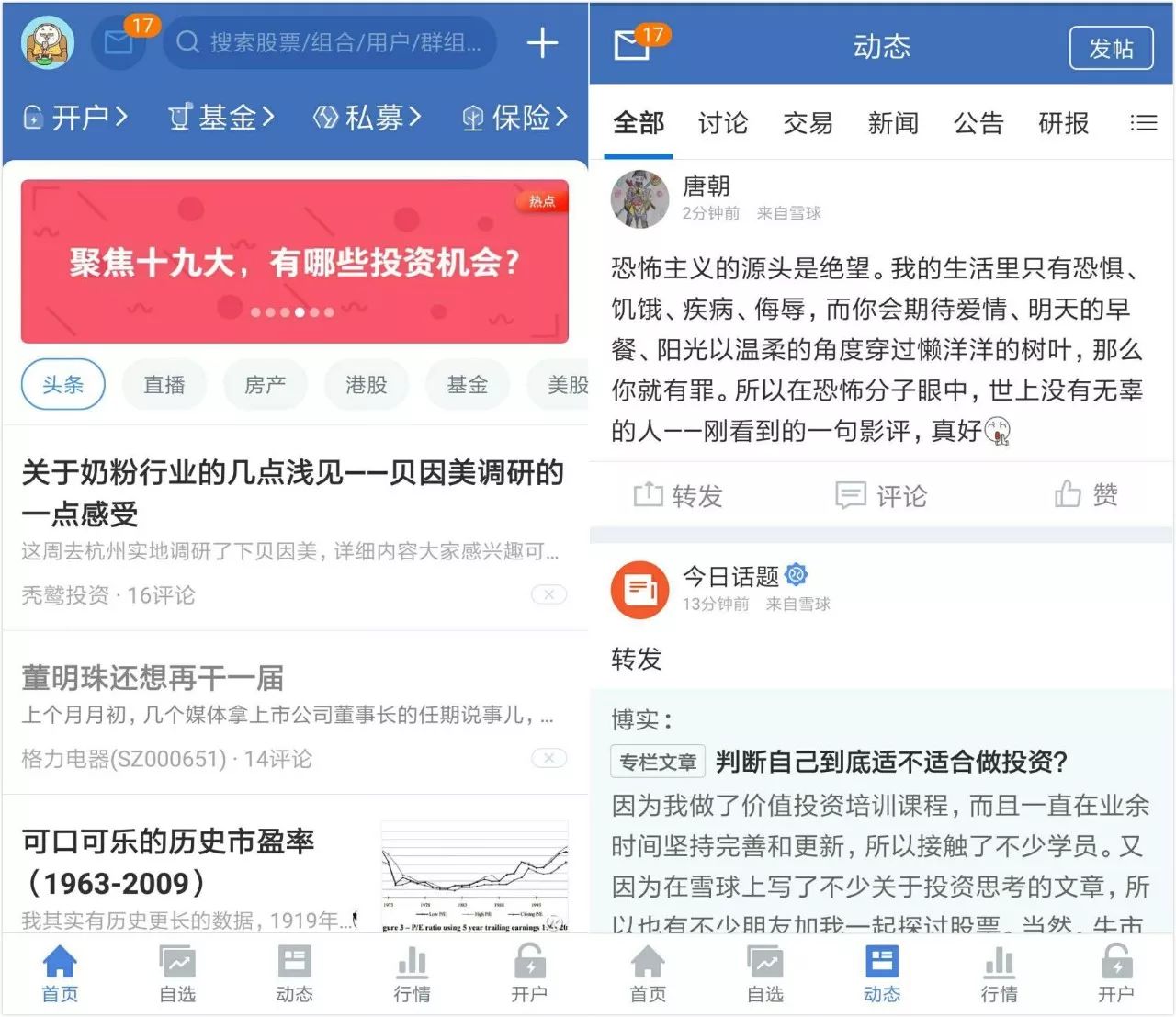 有人说雪球是财经版的“知乎”。不仅因为它早期也采用邀请制,还因为它聚拢了一批忠实的高质量用户。