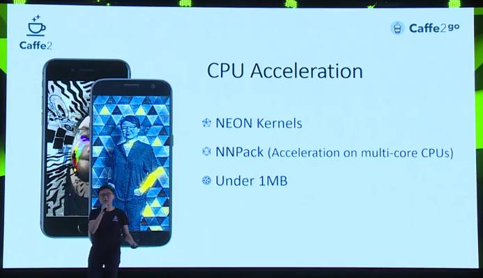 在部署产品的时候,有时用户终端设备只有CPU的硬件支持。我们对arm架构的CPU有Neon(一个并发指令集的拓展)的实现。我们也维护开发调用自己的开源CPU高性能运算库NNPack。我们也会做Caffe2编译文件的压缩来保证把AI添加到你的产品不会成为空间上的负担。