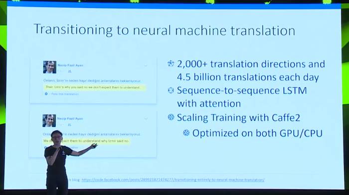 另一个我想分享的Caffe2案例是我们的机器翻译系统。