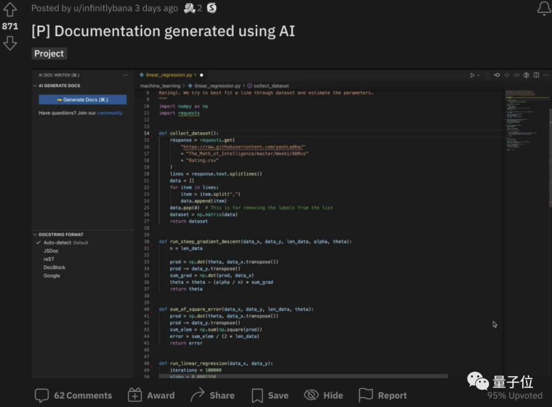 不仅是Copilot,“AI给代码做注释”这事最近在Reddit也比较火。