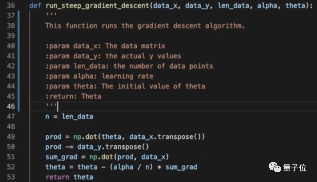 函数运行的是梯度下降算法。