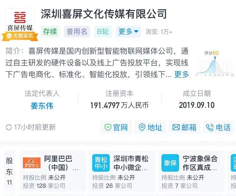 2022年3月10日,专注社区电梯广告的喜屏传媒,完成B轮融资,投资方为阿里巴巴。喜屏传媒成立于2019年,截至目前已完成多轮融资,过往投资方包括:青松基金、嘉实投资、德同资本、真成投资以及广州日报等等。