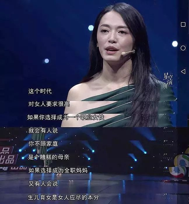 在《星空演讲》上,姚晨说出了“中年女演员的尴与惑”,坦诚自己生二胎后没戏接,一地鸡毛的生活。