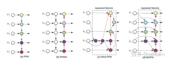 Neck :一系列混合和组合图像特征的网络层,并将图像特征传递到预测层。