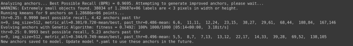 但是对于你的自定义数据集来说,由于目标识别框架往往需要缩放原始图片尺寸,并且数据集中目标对象的大小可能也与COCO数据集不同,因此YOLO V5会重新自动学习锚定框的尺寸。