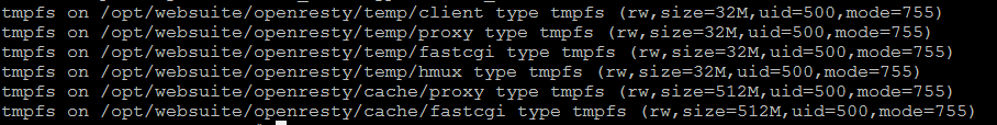 通过使用tmpfs,可将Nginx的临时目录及缓存目录放到内存中,降低对磁盘IO的消耗。