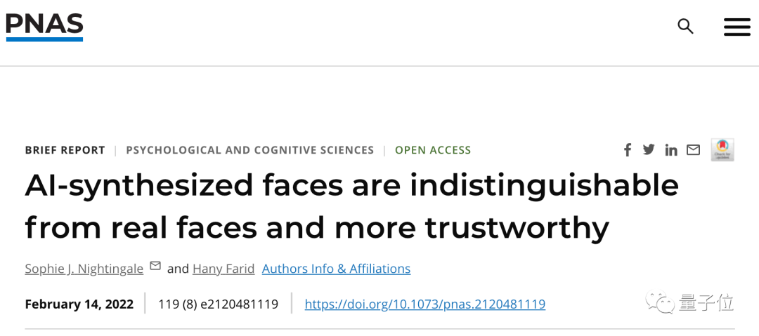 而另一边,今年发表在PNAS上的一项研究表示:AI生成的人脸和真实人脸没有区别,甚至更值得信赖。
