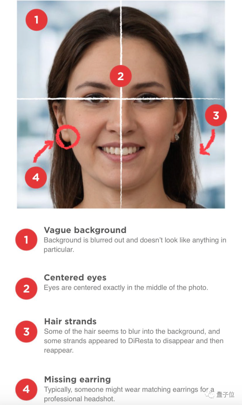 在此,研究人员也汇总了一些Deepfake人脸的特征来供大家区分。