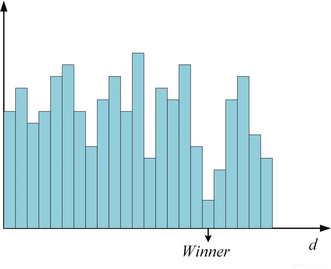 如图2所示,某个像素的所有视差下的代价值中,选择最小代价值所对应的视差作为最优视差。这一步非常简单,这意味着聚合代价矩阵S的值必须能够准确的反映像素之间的相关性,也表明上一步代价聚合步骤是立体匹配中极为关键的步骤,直接决定了算法的准确性。
