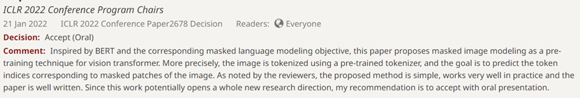 图3:BEiT论文在ICLR 2022的评审意见