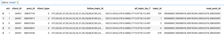 为了逼近真实推荐系统场景的数据处理,这里人为构造部分实际生产数据样例作为演示;
