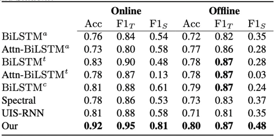 通过课堂音频或者视频对于老师和学生的课堂行为研究具有很长的历史,例如,Owens[1]等人提出了DART系统(Decibel Analysis for Research in Teaching),用来分析预测课堂中花费在单独说话(如:演讲),混合说话(如:讨论)或者无人说话(如:思考问题)等活动上的时间。Cosbey[2]等人通过使用RNN网络对DART系统的表现进行了提升。Mu[3]等人提出了ACODEA框架(Automatic Classification of Online Discussions with Extracted Attributes)用来对在线讨论进行全自动的切割和分类。与我们的研究最相似的,是Wang[4]等人提出的LENA系统,他们基于此系统对课堂中的三种活动进行了识别:教师讲课、课堂讨论以及学生小组活动。我们与Wang等人的研究的不同之处在于:我们提出了一种全新的多模态注意力机制,用于在真实课堂环境中进行课堂活动检测。而Wang等人的研究仍然需要教师全程佩戴LENA系统,从而可以通过音量与音色的差异来区分学生和老师的说话时间段。对于本文定义的目标任务,一种简单直观的方法是将说话人分离与说话人角色识别作为两个独立的模型,采用两阶段结合的方式进行连接。这也是在已有研究中被实践且证实有效的方法。然而,这种两阶段方法存在着一些明显的弊端:首先,不同阶段的模型所产生的误差会在整个预测流程中进行积累,导致最终结果的不准确;其次,两个独立任务分别优化是非常缺乏效率的,单一阶段的优化并不能完全保证最终结果的提升;最后也是最重要的,由于两个阶段的分离,多模态信息之间的交互被完全忽略了。 3