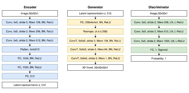 分类器(D):区分解码器输出体素的渲染视角和真实物体的视角。