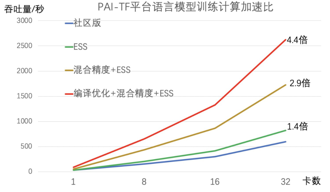 EasyTransfer 框架支持工业级的分布式应用场景,改善了分布式优化器,配合自动混合精度,编译优化,和高效的分布式数据 / 模型并行策略,做到比社区版的多机多卡分布式训练在运算速度上快 4 倍多。