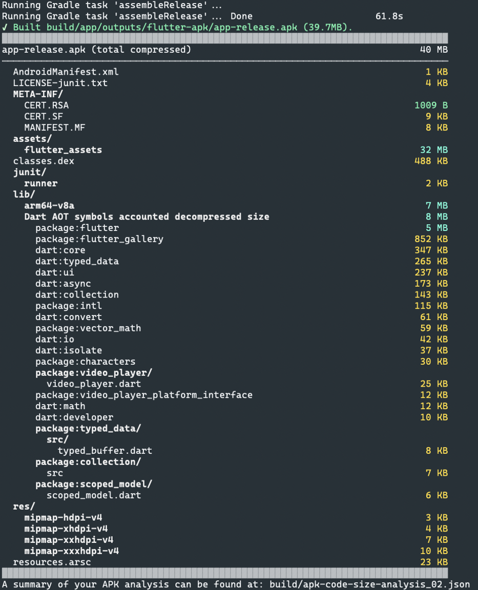 △ Flutter Gallery 发布版本 APK 的细分示例