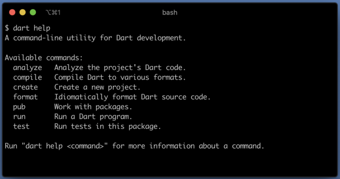 Dart 之前有许多小巧的开发者工具 (例如,用于格式化的 dartfmt 和用于代码分析的 dartanalyzer)。Dart 2.10 中新提供了统一的 dart 开发者工具,与 flutter 工具非常相似。
