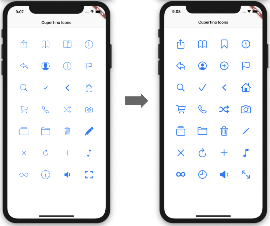 您可以在 cupertino_icons 预览页面中查看完整的图标列表,也可以参阅 flutter.dev 上的迁移详情页。