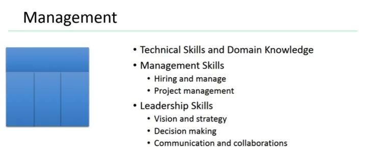 再说第三类,还有些人在特定阶段要走向管理,转向管理需要具备的技能与前两类又不一样。