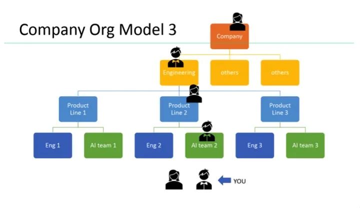 第二种的AI团队是在研发线,位于CTO下面,支持不同产品线和公司级别的AI需求。对这个架构下的AI团队,公司希望它提供的是一种通用的类似于中台的能力。