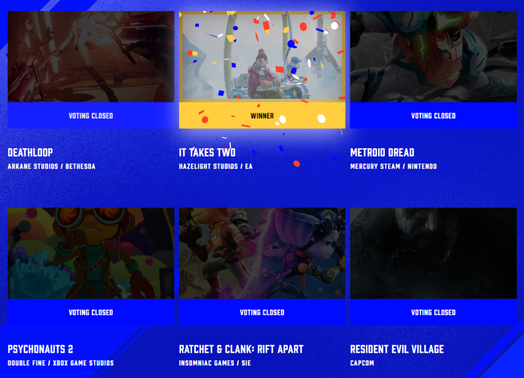 TGA 是游戏届一年一度的盛典,而今天 9:00 TGA 2021 颁奖典礼在美国洛杉矶的微软剧院圆满结束。《双人成行》获得了 2021 年度的“最佳年度游戏”奖项,《凯娜:精神之桥》则获得了“最佳独立游戏”,“最佳游戏指导”奖项则由《死亡循环》斩获。颁奖仪式上同样公开了许多新老游戏的新消息,如《Alan Wake2》、《战锤40K 星际战士2》等作品。以下分别是今天的获奖游戏: