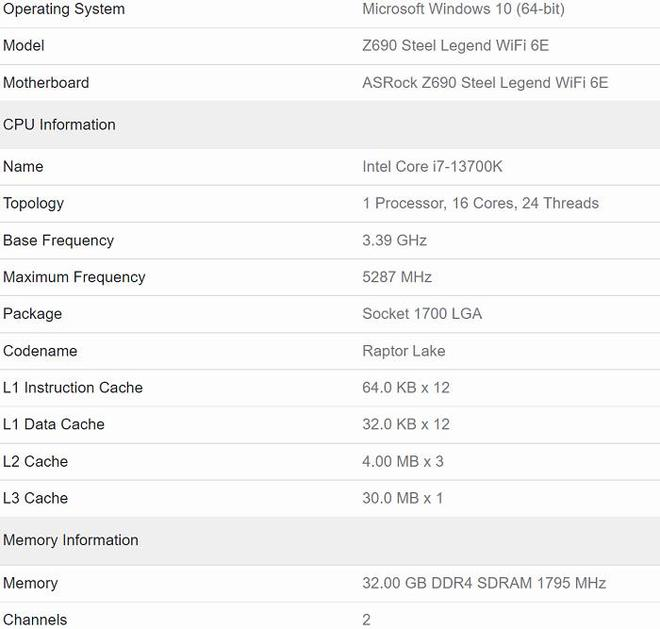 英特尔的 Raptor Lake 是 Alder Lake 的优化版本,基于相同的 Intel 7 工艺制造,有着类似的 P-Core 和 E-Core 设计,将会在今年内发布。继酷睿 i9-13900K 和酷睿 i5-13600K 相继曝光后,酷睿 i7-13700K 也出现在了 Geekbench 5 的数据库中。