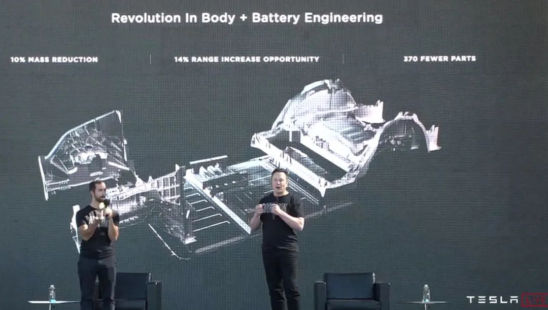 去年七月刚公布这种设计方案时,零跑称之为“CBC”;今年在 C01 上,他们换回了这种技术更广为人知的叫法——CTC,全称 Cell to Chassis。同样在 2021 年,比亚迪在发布 e 平台 3.0 时也表示,新平台将支持 CTC 车身设计。如果我们再往前看,2020 年九月“电池日”活动中,特斯拉发布了结构电池设计,第一次将 CTC 这个名词带到公众眼前。