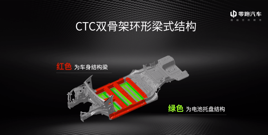 大多数人的关注点都在他们的第一款中大型轿车 C01 上。不过,零跑这次发布的重点并不是 C01 本身,而是这款车上首次运用的一种新型结构设计——电池底盘一体化。