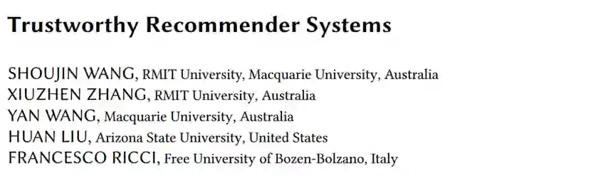 几十年来,RS已在我们日常工作、学习或娱乐的几乎所有信息系统中得到广泛应用。近年来,随着越来越多的网络威胁(包括网络攻击、虚假或错误的在线信息、网络空间的偏差)的发生,可信推荐系统显然是一种需求。在不同的应用领域,有各种各样的可信推荐系统的例子。在电子商务领域,一个典型的例子是强大的RS,它可以在Ebay或Amazon等平台上自动抵制虚假评级和评论。这种类型的RS会检测到平台中插入的虚假评级和评论,并在生成可信赖的推荐时将其丢弃。在媒体领域,一个典型的例子是最近为新闻领域提出的事实核查技术(例如,谷歌事实核查工具),它引入了一系列技术来检查网络上新闻的真实性,只有经过验证的真实新闻才会被推荐给最终用户。另一个典型的例子是在WWW 2022会议上发表的真实性感知新闻推荐系统。该系统在生成推荐之前检查每条新闻的真实性,因此只有经过检查的真实新闻才会推荐给最终用户。