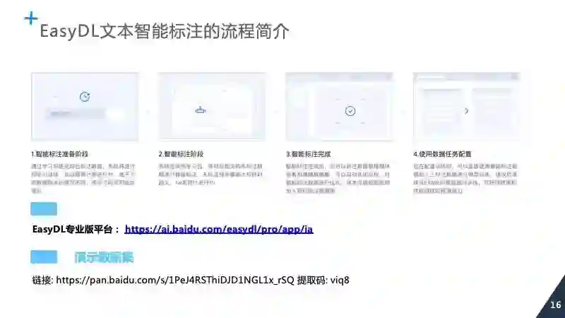 我会通过一些数据集还有演示告诉大家如何去训练和使用一个文本智能标注,以及使用文本智能标注的智能标注数据怎么训练一个模型。数据集也会通过群里发送给大家,大家可以下载演示数据集,可以自己体验一下,对应的链接就是通过这个页面的链接进入到平台里。