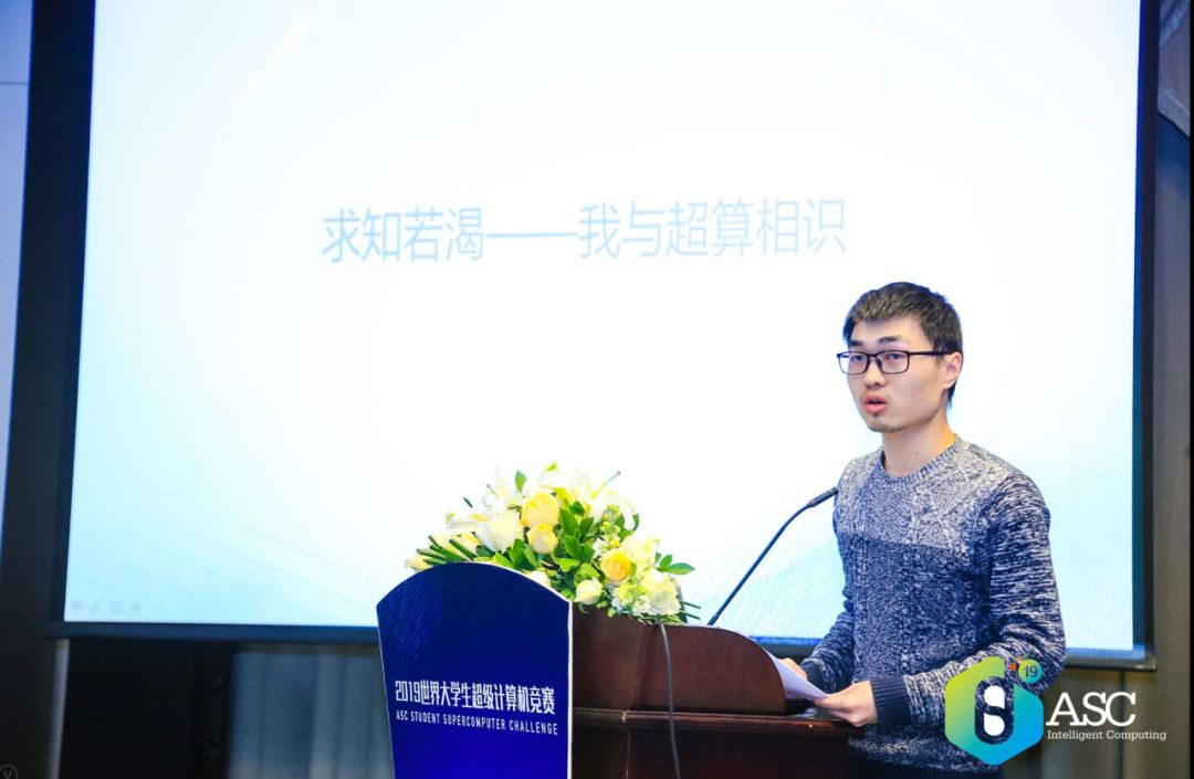 此次ASC19启动会特别邀请了来自华中农业大学参赛队代表周恒同学发表讲话,分享心得(华中农业大学参赛队在去年的ASC竞赛中取得了优异的成绩)。
