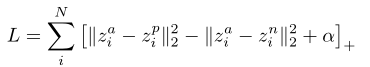 假设一个嵌入锚示例zia的三重集合,一个嵌入正示例zip和一个嵌入负示例zin,这个目标最小化锚与正锚与锚与负锚之间的距离差以及给定的裕度α。α是一个超参数。如果正例与锚之间的距离较小,而负例与锚之间的距离较大,则三重损失L较小。参数α确保允许同一类的示例之间存在空白。