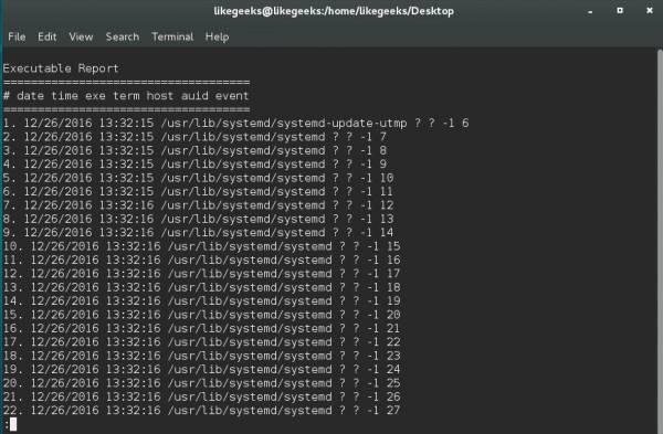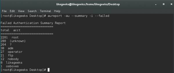 aureport工具被设计为创建一些基于列特征的报告,以显示在审计日志文件中所记录的那些事件。