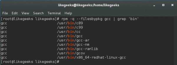 $ rpm -q --filesbypkg gcc | grep 'bin'