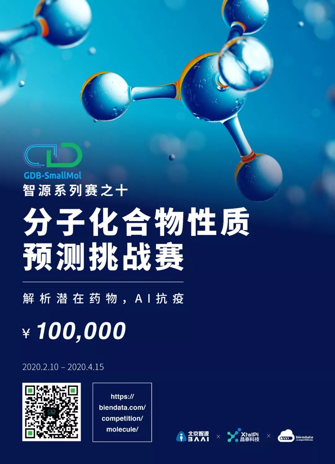 北京智源人工智能研究院、晶泰科技、biendata 联合发布小分子性质预测大赛,奖金 10 万元。