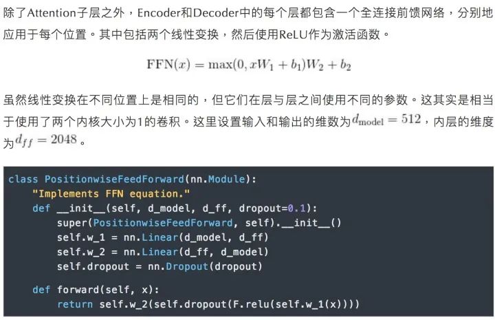 每层都有两个子层组成。第一个子层实现了“多头”的 Self-attention,第二个子层则是一个简单的Position-wise的全连接前馈网络。
